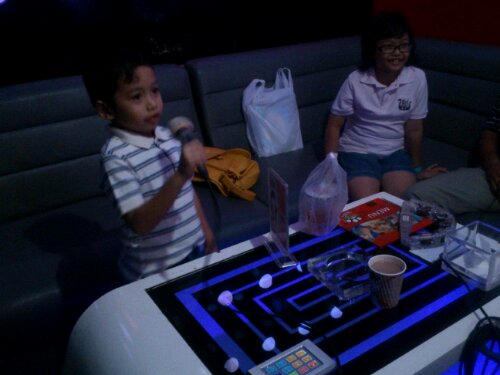 Yang nyanyi siapa? Dominasi oleh saya dan adik. Ah, ngga nyangka, nyanyi Pepaya mangga pisang jambu aja masih lupa, la ini nyanyi lagunya One Direction fasih bener. Kami berpindah-pindah dari lagu barat (One Direction, Carly Rae Jepsen, Adele, Christina Peri, Maroon 5) dan Indonesia (Cakra Khan, Rumour, Afgan, Geisha, Noah). Cukup satu jam, karena anak-anak besok sekolah. Selesai, baru lakukan pembayaran.