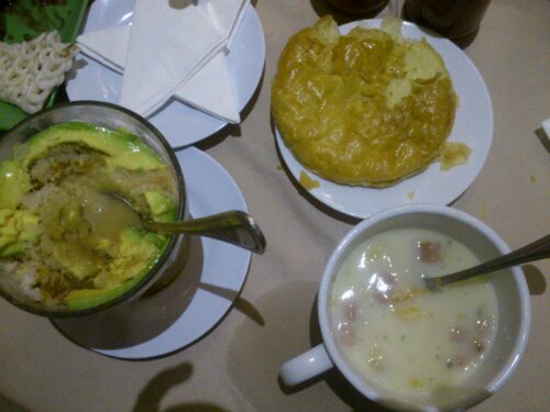 Payah, gw lupa foto sebelum diobrak – abrik gini. Es apukatnya, tampilannya WOW! Jadi bagian bawah campuran susu coklat sama kopi, ditutup gunungan es serut, trus potongan apukat disusun rapi nutupin gunungan itu, model kaya kelopak bunga gitu. Rasanya juga juara, enak disantap dikit-dikit. Makannya dicampr dulu semua, baru hirup deh sesendok demi sesendok. Srupuuut…