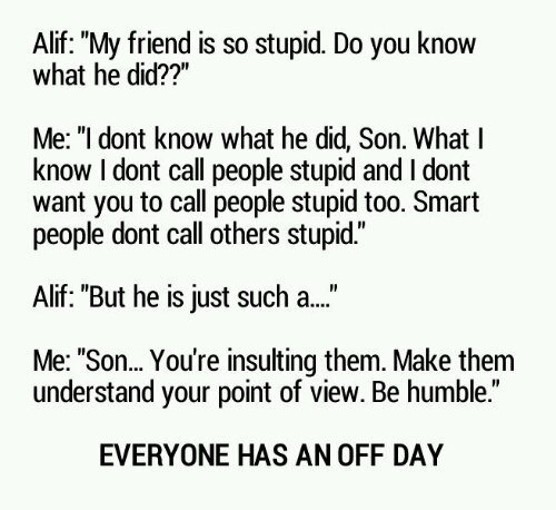 Sometimes we forget, we are not the smartest one, so better to keep our mouth south before judge other. Pick position like them, and imagine what treatment that we want, that we can accept it. That’s the way how people related each other. Thanks you Albert, and I’m not your aunty 🙂