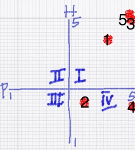 Pada nilai beda, terjadi pergeseran kuadran, setelah setahun variabel-variabel tersebut ditanyakan kembali nilainya. Berikut ringkasan pergeserannya :