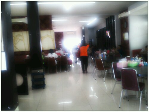 Di dalam penuh meja kursi, muat 100 orangan pasti. Belum area VIP yang serba tertutup. Toiletnya bersih. Bagian depan seperti resto Padang lainnya, berjejer piring-piring kecil berisi aneka makanan. Trus meja kasir terpisah, area minuman terpisah, dan semua pelayannya menggunakan baju merah.