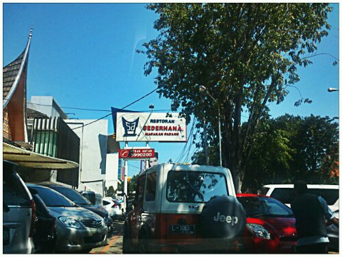 Di Surabaya, ada beberapa resto Padang yang terkenal. Belum lagi yang kecil-kecil. Cerita yang gede dulu yah. Kita sekeluarga pernah makan di Restoran Padang Sederhana. Biar namanya Sederhana, tapi asli deh penampakannya ngga gitu. Restoran ini berhasil menyingkirkan restoran steak yang tadinya bercokol di pojokan jalan Kertajaya Indah, satu area elit di Surabaya. Udah gitu rame terus lagi, cari parkir aja susah.