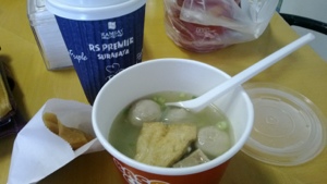 Not to mention about the price. I can get a delicious bakso for only 1,000 IDR per piece, with a lot of beef stock. This BasoCup, has a price 15,000 IDR per cup, consist of 3 rounded bakso, 1 squared bakso, 2 gorengan (fried dumpling) and 1 tofu. So actually it is only 7,000 IDR, if BasoCup can equal the traditional bakso taste.