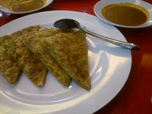 Oh iya, martabaknya masih kalah juga sama yang Resto Mesir itu. Meski menurut gw yang di sana juga kurang asin, yang di Assalam malah kurang sedap. Mungkin karena dia makannya dicocol kuah kari juga yah, makanya agak-agak tawar gitu. Yah, selera gw aja kali yang keasinan π
