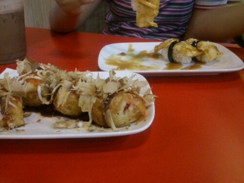 Di Indonesia, banyak tuh yang begitu. Lebih terjangkau, dan kita memang terbiasa makan makanan dengan bumbu lengkap, jadi mesti spicy. Jadilah banyak resto sushi yang tumbuh, dengan mengusung konsep yang sama.
