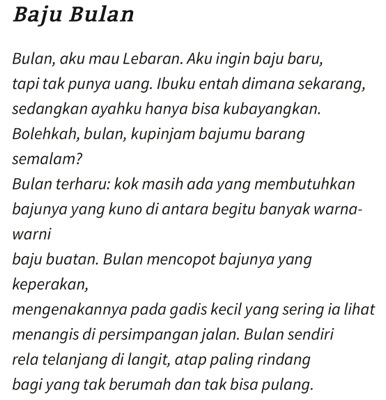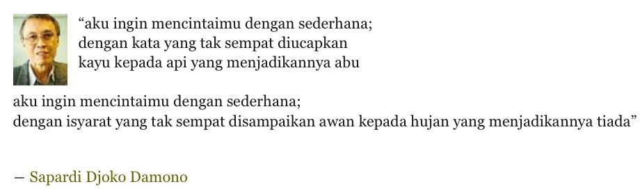 Ada pula puisi yang mudah dicerna, namun arti yang dikandungnya lebih dalam dari kata itu sendiri. Kalau yang ini Wiji Thukul dan Joko Pinurbo bisa mewakilinya. Baca puisi karya mereka, ada rasa yang selalu tersentuh. Entah haru, bahagia, atau marah.