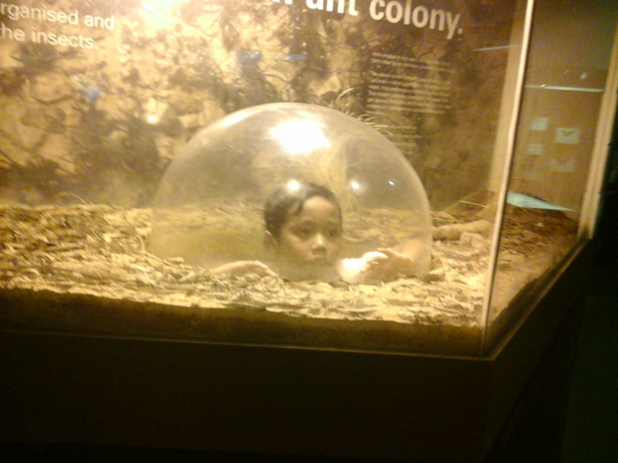 Lantai dua lebih serius. Ada satu tempat yang kita masuki konon ngga cocok untuk anak-anak. Kelihatannya seperti tempat penyiksaan atau pengabaian anak-anak. Lalu penemuan-penemuan, dan kehidupan manusia di masa lampau. Kita malah ngga sempat ke Forest Gallery saking mepetnya waktu.