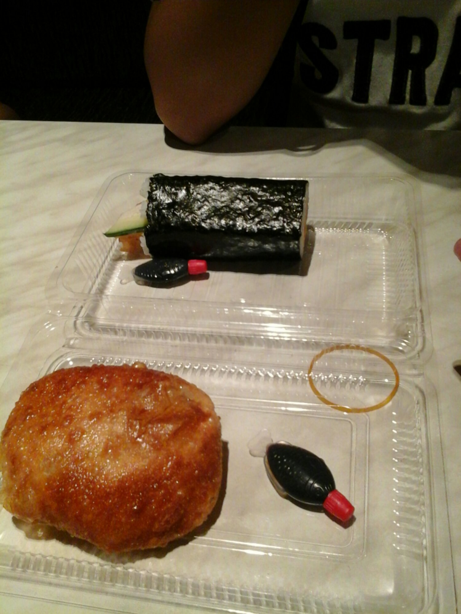 Ada beberapa outlet, tapi yang kita datangi sepertinya orang jepang punya. Entah ya, ada sushi, mie, dan dim sum. Nyampur-nyampur pokonya. Sushinya cukup enak, dan sushi disini modelnya ngga sekali suap. Tapi dipegang kaya chicken tandori gitu, atau kaya onigiri. Kenyang meski makan satu gulung doang, lainnya kita pesan fried noodle sama chicken dim sum.