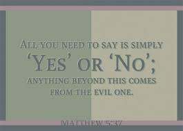 Jika ya, hendaklah kamu katakan: ya, jika tidak, hendaklah kamu katakan: tidak. Apa yang lebih dari pada itu berasal dari si jahat.