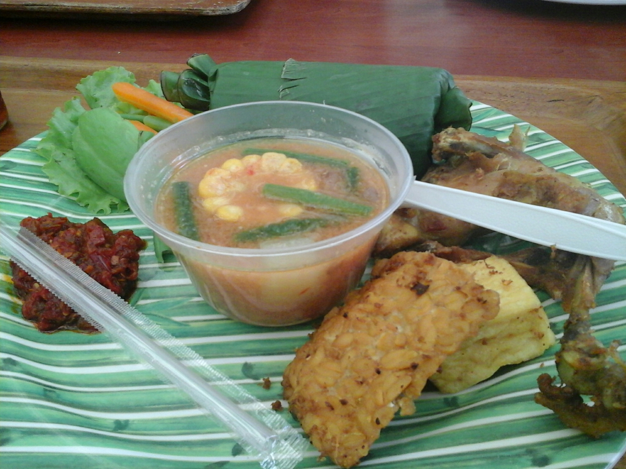 Ngga lengkap rasanya kalau ke tanah priangan ngga nyobain nasi timbel. Karena belinya di tempat wisata, yeah you know lah sudah mihil ngga anget lagi. Kalau anget pasti lebih enak. Lauknya isi ayam goreng, seuprit ikan asin jambal, tempe dan tahu. Aslinya enak loh ini, pake sayur asem sama nasi pulen yang dibungkus daun. Saya perhatikan orang sini soal lalapan sampe minta tambah-tambah lo! Ckckck emang pemakan tumbuh-tumbuhan 🙂