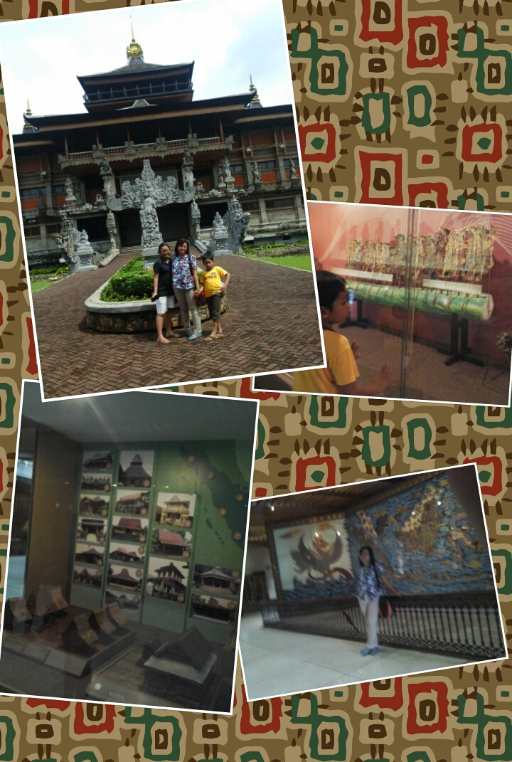 Gedung besar ini cukup mencolok terlihat saat kami memasuki area Taman Mini Indonesia Indah. Arsitekturnya Bali banget, lengkap dengan gapura yang dipakai untuk berfoto. Untuk masuk perlu biaya 15 ribu per orang, dan menemukan letak loketnya sepertinya jadi masalah tersendiri kalau salah sisi. Areanya luas banget, demikian juga dengan gedungnya.