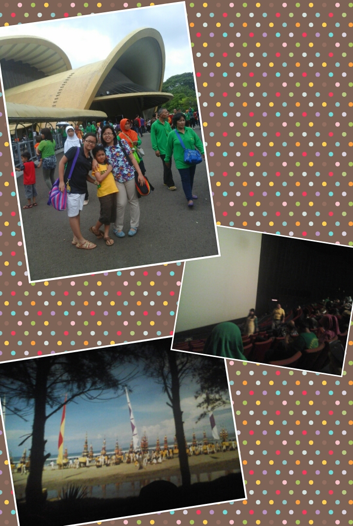 Masih saya ingat, dulu ortu mengajak saya ke Keong Emas untuk nonton film, cuma lupa filmnya apa. Supaya anak-anak merasakan hal yang sama, saya membeli tiket 30 ribu per orang supaya boleh masuk ke teater yang serba besar itu. Ratusan orang sudah menunggu menghadapi layar yang juga guede dan berbentuk cekungan.