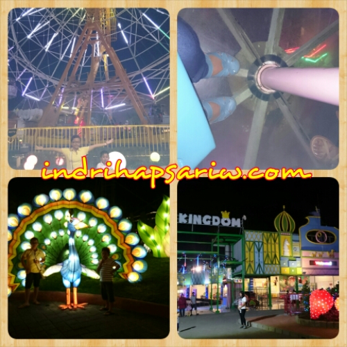 Tapi karena melihat ada Ferrish Wheel yang tinggi menjulang kami menuju belakang lewat gang-gang yang dipenuhi stan jualan. Daaan…satu area besar dengan banyak foodcourt, restoran dan banyak wahana ada di belakang. Ealah…padahal hari sudah gelap, dan belum satupun wahana outdoor yang kami jelajahi. Disini lebih ramai karena memang lebih seru.