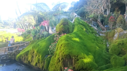 Kami menyusuri taman-taman yang di pinggir, naik lebih ke atas. Pemandangan ke bawah sungguh indah, yang di ataspun teduh dengan banyak pohon besar, arena bermain anak, dan bersih. Pemandangan di luar kompleks Selecta juga menakjubkan, sampai rasanya enggan menempatkan foto-foto yang saya dapat dalam kotak yang lebih kecil 🙂