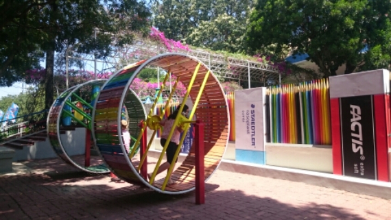 Gerbang bunga yang dulu indah, kini nampak sudah tua. Ada bangunan baru tempat bioskop 4D, tapi kami ngga kunjungi. Ada tempat bermain anak dan food court yang nampak cukup baru, serta lagi-lagi tukang yang mempersiapkan company gathering. Lalu suara hiruk pikuk itu ternyata berasal dari arena bermain bak Time Zone, yang rame sendiri karena ngga ada pengunjung yang memainkannya.