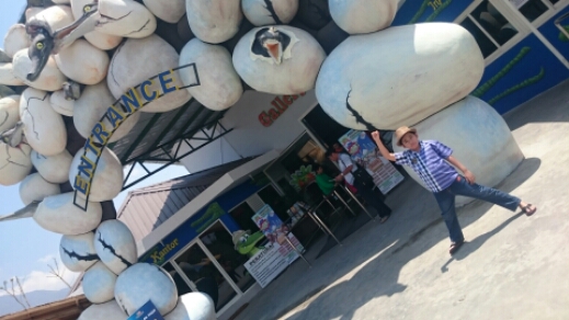 Arena outdoornya panas banget, padahal itu baru jam 10. Isinya kanan kiri kolam buaya berbagai jenis, tapi yang kecil. Setelah itu ada arena pancing, tapi mancing piranha π Bayar 5 rb dan kita dikasih kail dan lele. Arena setelah stasiun kereta juga ada kolam buaya, hih ini mah serem. Soalnya kita dikasih umpan, trus buaya umur 60 tahun itu akan membuka mulutnya lebar-lebar dan mengatupkannya dengan cepat. Masalahnya tu buaya gede banget, dan saat dia mengatupkan mulutnya aja suaranya keras. Apalagi kalau dia menggerakkan ekornya ke air, langsung pada lari dah orang-orang dari jembatan. Sungguhan loh, buaya ini PHP tenan. Kirain berat dan lambat, ternyata dia ini sangat gesit.