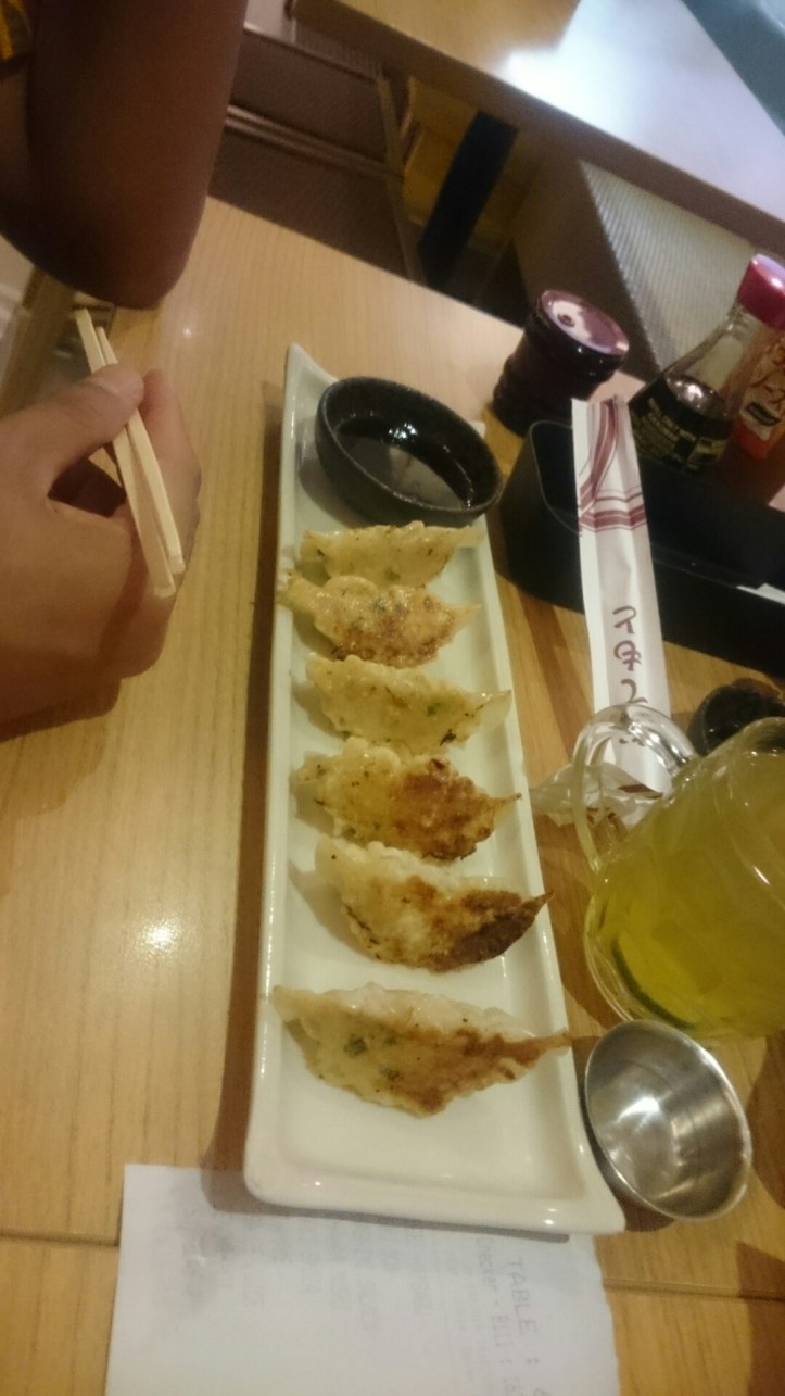 Mau ngemil cantik juga ada gyoza, yang pilihannya dipanggang atau digoreng. Gyoza ini kaya dim sum dengan isian daging dan sayur. Enak kok, apalagi ditata cantik begini.