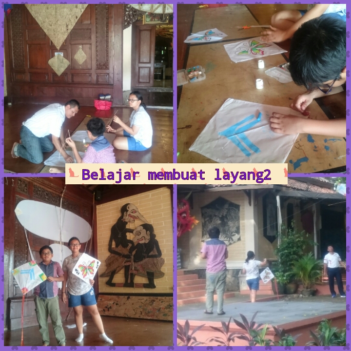Setelah selesai melihat-lihat selanjutnya pengunjing diajari membuat layang-layang. Kerangka dari bambu dan talinya sudah disiapkan, tinggal dilem kertas putihnya lalu diwarnai. Setelah selesai pegawainya akan mengikatkan tali senar dan benang layangannya, siap untuk diterbangkan.