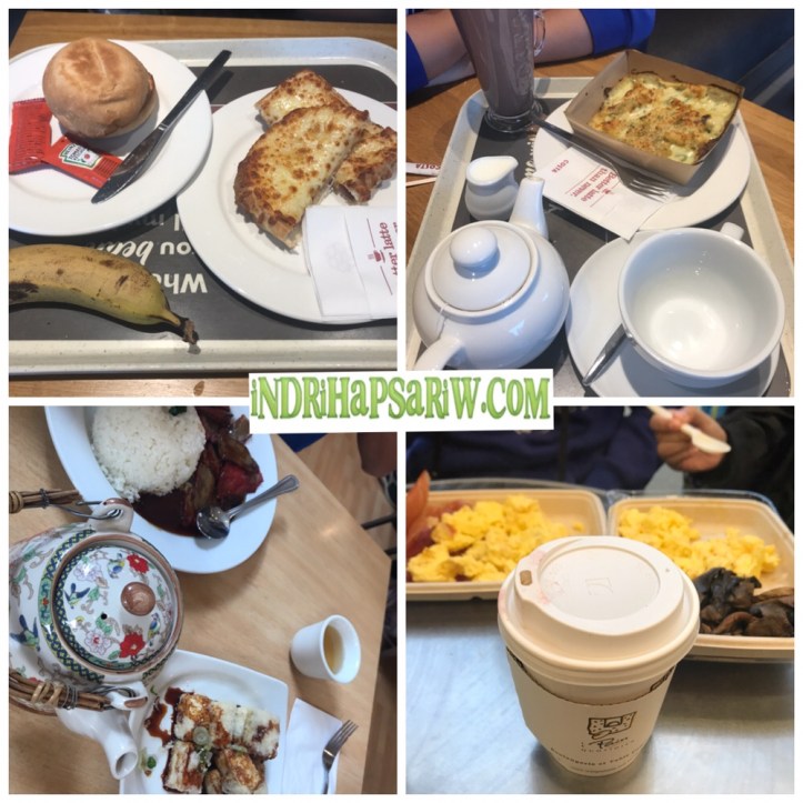 Soal harga, yah emang mahal sih. Tapi ada tipsnya kalo mau murah. Pipis nih, kena 20 pence. Sekitar 5000 gitu deh. Air minum sekitar 600 ml, paling murah 40 ribu. Nah kalau mau pipis gratis, pas di resto, cafe atau fast food outlet sempetin pipis dulu. Karena ngga semua stasiun punya toilet, adapun mbayar itu. Di cafepun ke toilet juga mesti beli atau makan disana, pintu-pintunya dikode, bahkan ada yang mesti masukin token dari kasir baru kebuka π Soal air minum, katanya sih air kerannya macam tap water gitu, jadi bisa langsung diminum. Kalau belum yakin, perlakukan seperti air isi ulang aja, masak dulu di termos listrik. Makan, bangsa McD itu bisa abis 6-7 GBP alias 140 ribu, itu sudah lengkap dua burger, satu kentang sama minum. Kalau di cafe, roti atau salad sekitar 5 lah atau 100 ribu. Kopi 3 GBP atau 60 ribu. Kalau meringis baca ginian, mending beli di supermarket yang lebih murah harganya (sandwich atau kopi 2-3 pounds) dan nyangu kemana-mana. Di tempat-tempat yang kami datangi ngga ada kisah pemeriksaan kaya di bioskop sini, dilarang bawa makanan dari luar π Tapi kan ada kalanya kita butuh kehangatan ya, atau butuh duduk, atau butuh pipis. Makanya sekali-sekali perlu makan di cafe.
