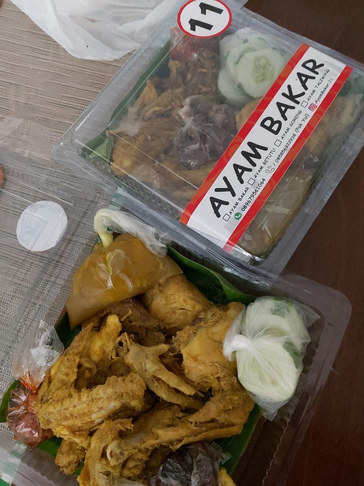 Kalau ini bikinan adik saya dan cocok aja nih rasanya. Secara sayanya ngga bisa masak ya sudah piro-piro dibikinin kaya gini. Ayamnya pake pejantan jadinya gede dan minim lemak. Trus ngga tau gimana cara dia bikinnya tapi dagingnya empuk dan bumbunya meresap. Kalau ayam betutu bumbunya dilabur ke ayamnya. Kalau favorit anak saya yang ayam bakar, kerak item yang pait itu ngga ada, manisnya pas, dan asli bumbunya bikin nagih. Bisa dibuat simpenan di kulkas lo. Kapan hari saya pesan ayam ungkep biar kalau perlu tinggal digoreng (iya, kakaknya pemalas ) begitu datang langsung simpan di freezer. Ternyata adik saya sudah bisa bikin bumbu kuning yang kalau dituang di nasi bisa bikin nambah terus