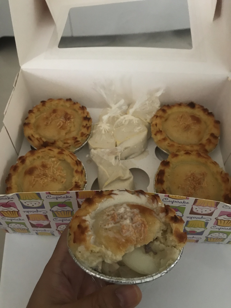 Satu kotak dibagi jadi 2 varian rasa yaitu manis dan asin. Yang manis termasuk classic butter, keju, coklat, tiramisu, nanas, dan durian. Yang asing ada ayam lemper, daging, lainnya lupa pokoknya total ada 6 rasa. Kirain makan 1 kenyang, la kok ngambil lagi