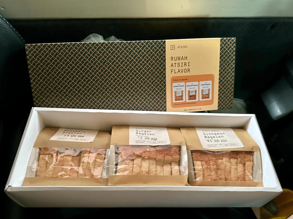 Jadi emang ya, ada aja makanan yang menarik mata dan memanjakan lidah di tempat paling random kaya pabrik wewangian 😀 Karena wewangiannya udah pada tau lah ya, tapi tau ngga roti bagelen itu bisa dibuat seharum dan seenak tumbuhan-tumbuhan yang ditanam di komplek pabrik wewangian tersebut? Ada bagelen rasa rosemary, jahe, dan kayu manis. Bagelennya tetep roti kering manis gitu, tapi ditambah rempah yang cocok-cocok aja kok yang jadi enak ya. Saya pilih yang mix rasa supaya bisa nyobain semua. Paling enak yang cinnamon sih, kemasannya juga bagus cocok jadi oleh-oleh.